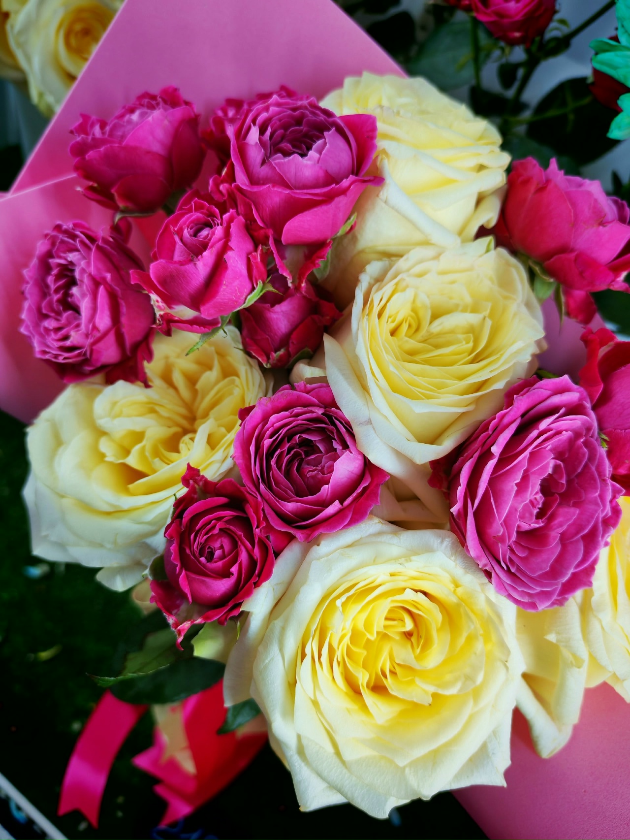 5 роз и 2 кустовые розы