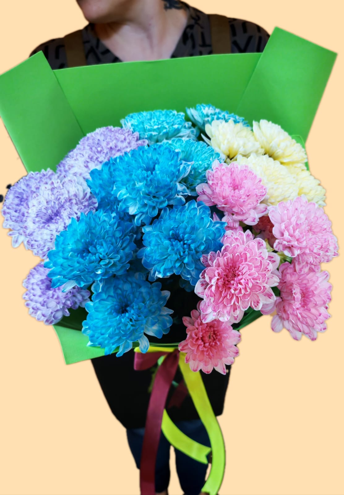 5 хризантем с оформлениемЦветовую гамму можно выбрать